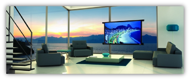 Shipping Summer 2012! Designed to be the first levitating TV that floats an image in thin air and virtually disappears into the environment s existing décor, Black Diamond Motorized is a new sleek and sexy motorized screen solution. Consisting of a slender, cable-hung, motorized cassette, Black Diamond Motorized drops a small tube from the ceiling hanging only by thin aircraft cables. The tube then stops at a preset location and rolls the material down, into place. When powered off, Stealth rolls from the bottom up using custom helixes and silently disappears back out of sight, leaving barely a trace of its existence. Featuring industry-leading Black